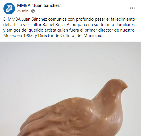 Desde el Museo Municipal de Bellas Artes de Roca y otras instituciones, expresaron el profundo pesar que causó la muerte del reconocido artista.