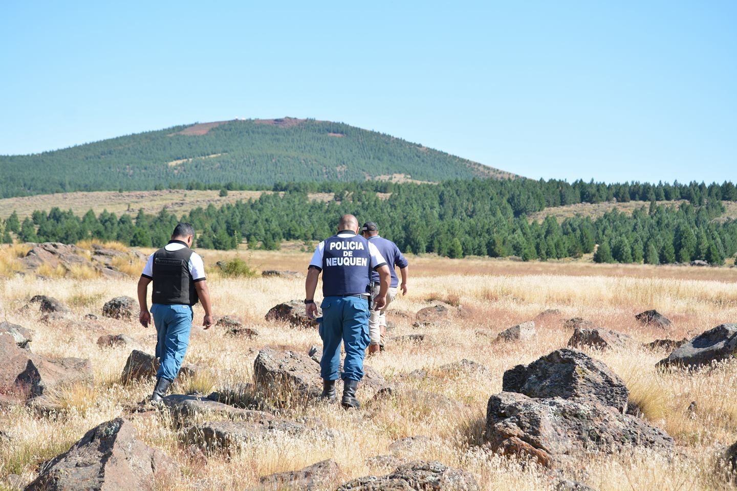 Trabajan en el lugar personal especializado de la policía provincial; de las divisiones Montada y de Canes, la brigada de Investigaciones y efectivos de las comisarías de Chos Malal, Las Ovejas, Andacollo, Cutral Co y de Rincón de los Sauces, entre otros.