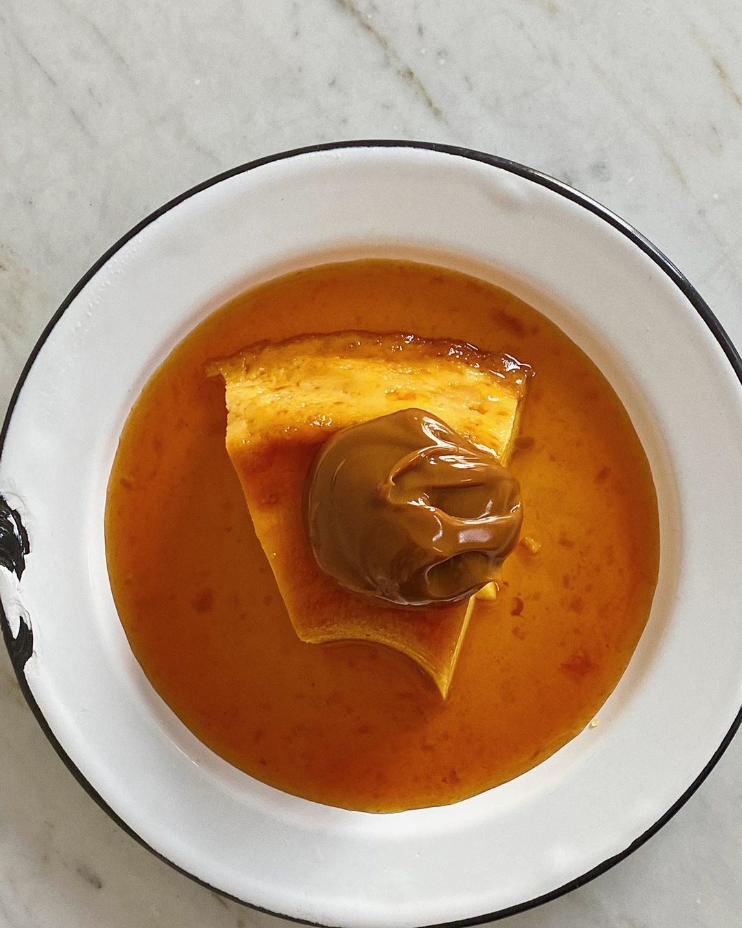 Para el flan: unir todos los ingredientes, mientas volcamos el mix dentro del molde acaramelado lo vamos a ir colando. Cocción: tapar el molde con papel aluminio (si no tenés, mandá placa y listo) para que no se forme una costra en la superficie.