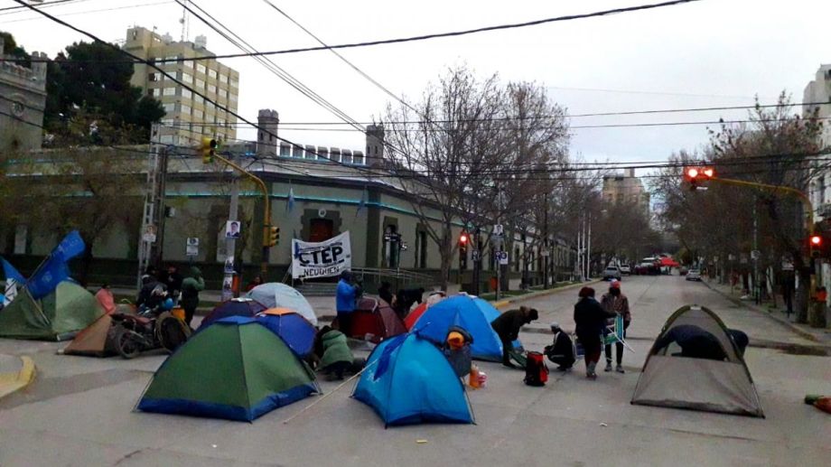 El día del aniversario por los 115 de Neuquén comenzó con un corte de tránsito en el centro de la ciudad, el que viene de la mano del acampe que las organizaciones sociales y los ceramistas instalaron ayer a la mañana frente a la Casa de Gobierno.