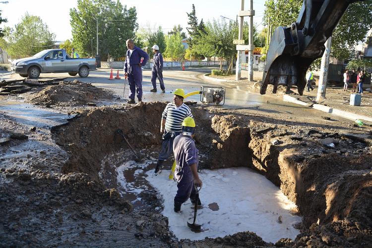 Rompieron un caño de gas cuando arreglaban un acueducto que había inundado un zona del oeste de Neuquén.
