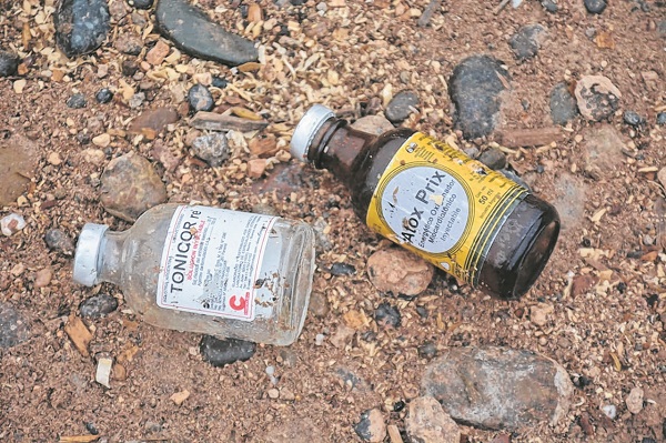 Ayer, en un recorrido que realizó este medio por el predio ubicado en Costa de Reyes, encontró en el suelo un frasco de Tonicor Re y otro de Atox Prix, ambas sustancias usadas para mejorar el rendimiento de los animales.