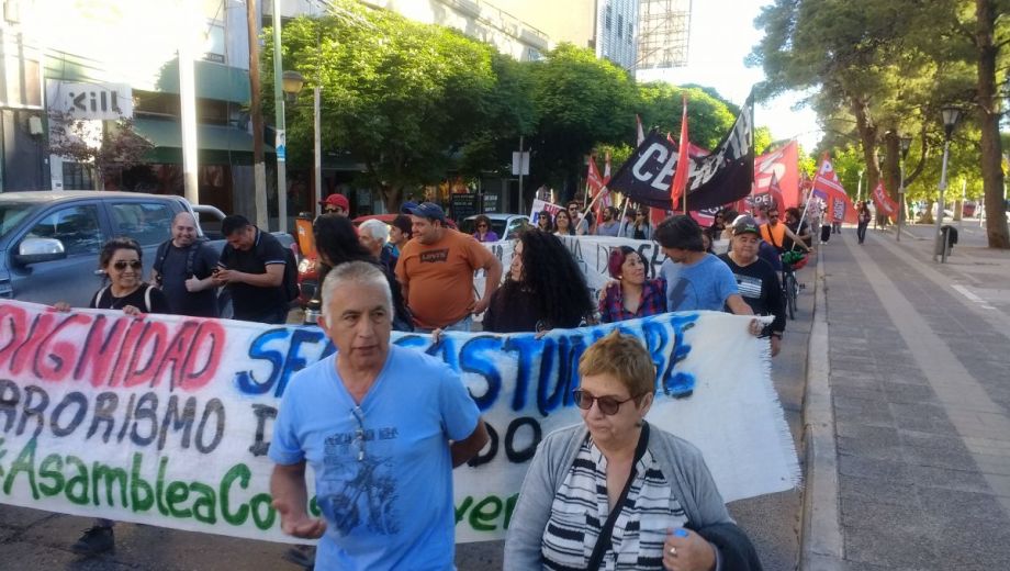 Los manifestantes se encolumnaron en la Avenida Argentina, marcharon por el centro neuquino hasta llegar la sede del consulado chileno situado sobre la calle Rioja, a pocos metros de Casa de Gobierno.
