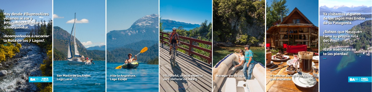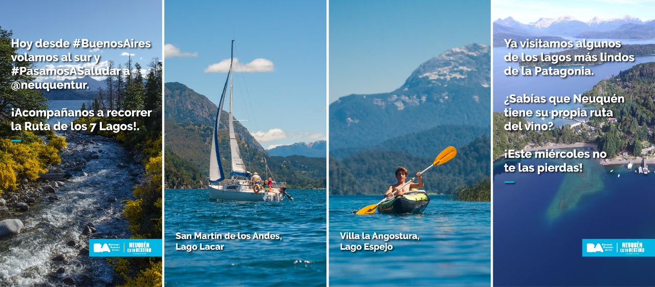 Tras pasar por Mar del Plata y Tucumán, esta semana se podrá recorrer, desde casa, los bellos tesoros naturales que posee Neuquén, como la Ruta del vino, la Ruta del Pehuén y la Ruta de los lagos, los temas elegidos para estos paseos virtuales. Los contenidos se pueden seguir a través del Instagram @travelBuenosAires.
