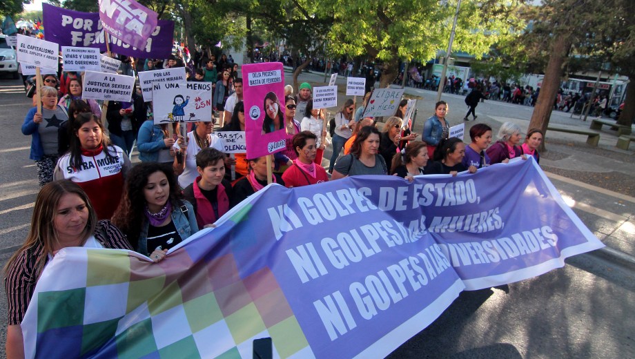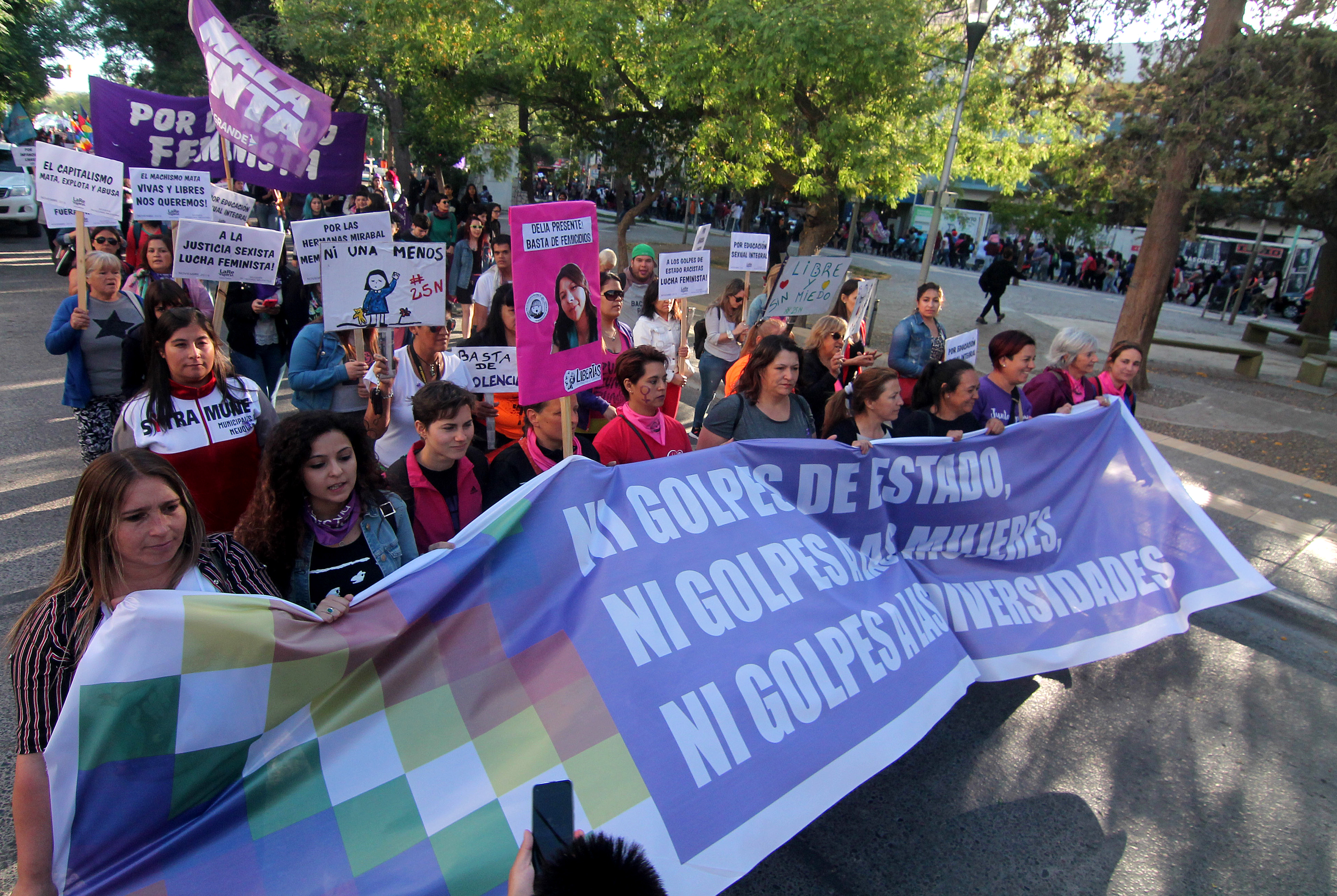 La bandera principal que encabezaba la manifestación anunciaba: “Ni golpes de Estado, ni golpes a las mujeres, ni golpes a la diversidad”. Las pancartas decían “Nos están matando, Estado responsable”, “A la justicia sexista lucha feminista”, “Emergencia ya!” y “Por infancias libres”.