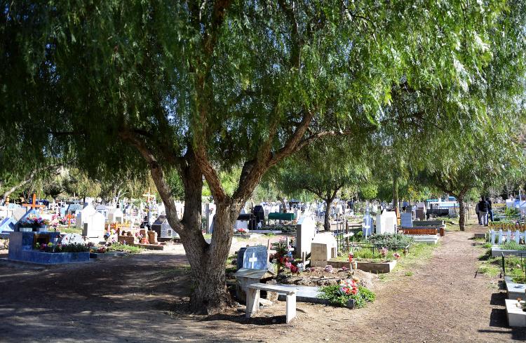 El camposanto se ubica entre la calle Abraham y las bardas. Al lado funciona el CPEM 48, sobre tierra que supo ser del cementerio, con problemas por esa vecindad de conveniencia (ver aparte). Hay unos 5.000 cuerpos “descansando en paz” allí y “está saturado”.