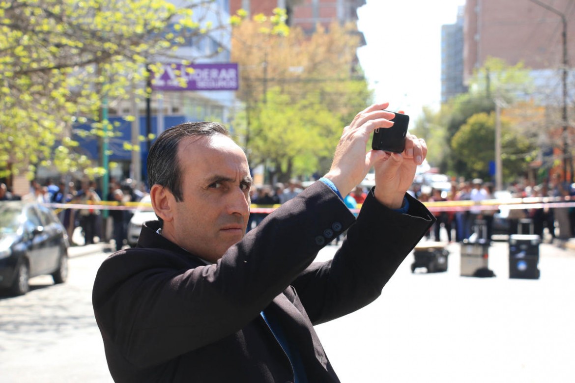 Durante los tensos acontecimientos, el entonces director de Homicidios Jacinto Herrera, tomó fotografías con su teléfono a los periodistas mientras entrevistaban al entonces jefe de la fuerza, Raúl Liria.