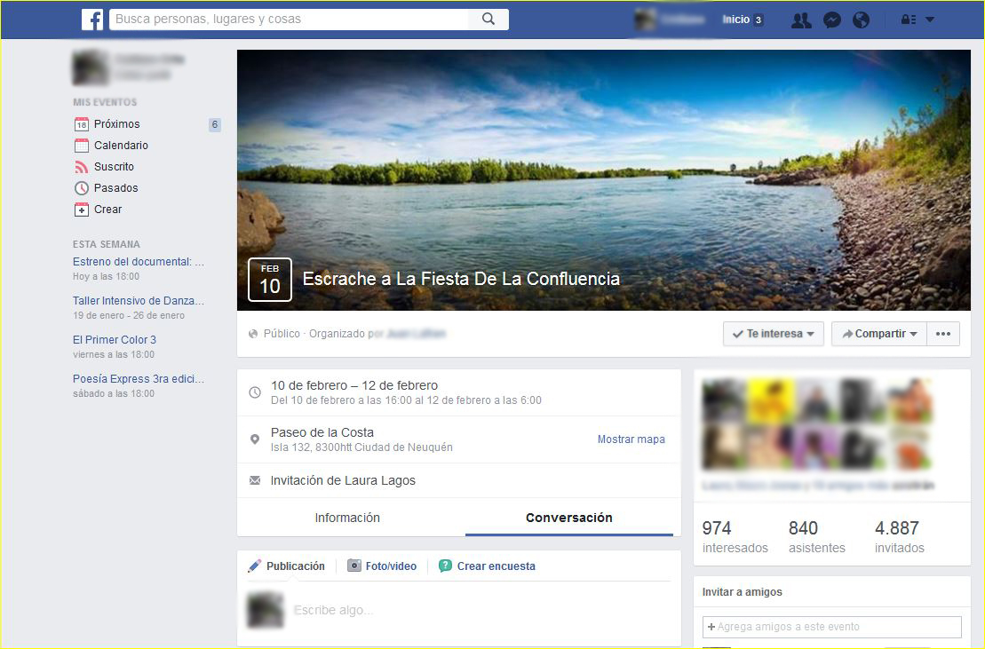 Hasta el momento hay 840 personas que asistirán al evento, y 974 personas interesadas.