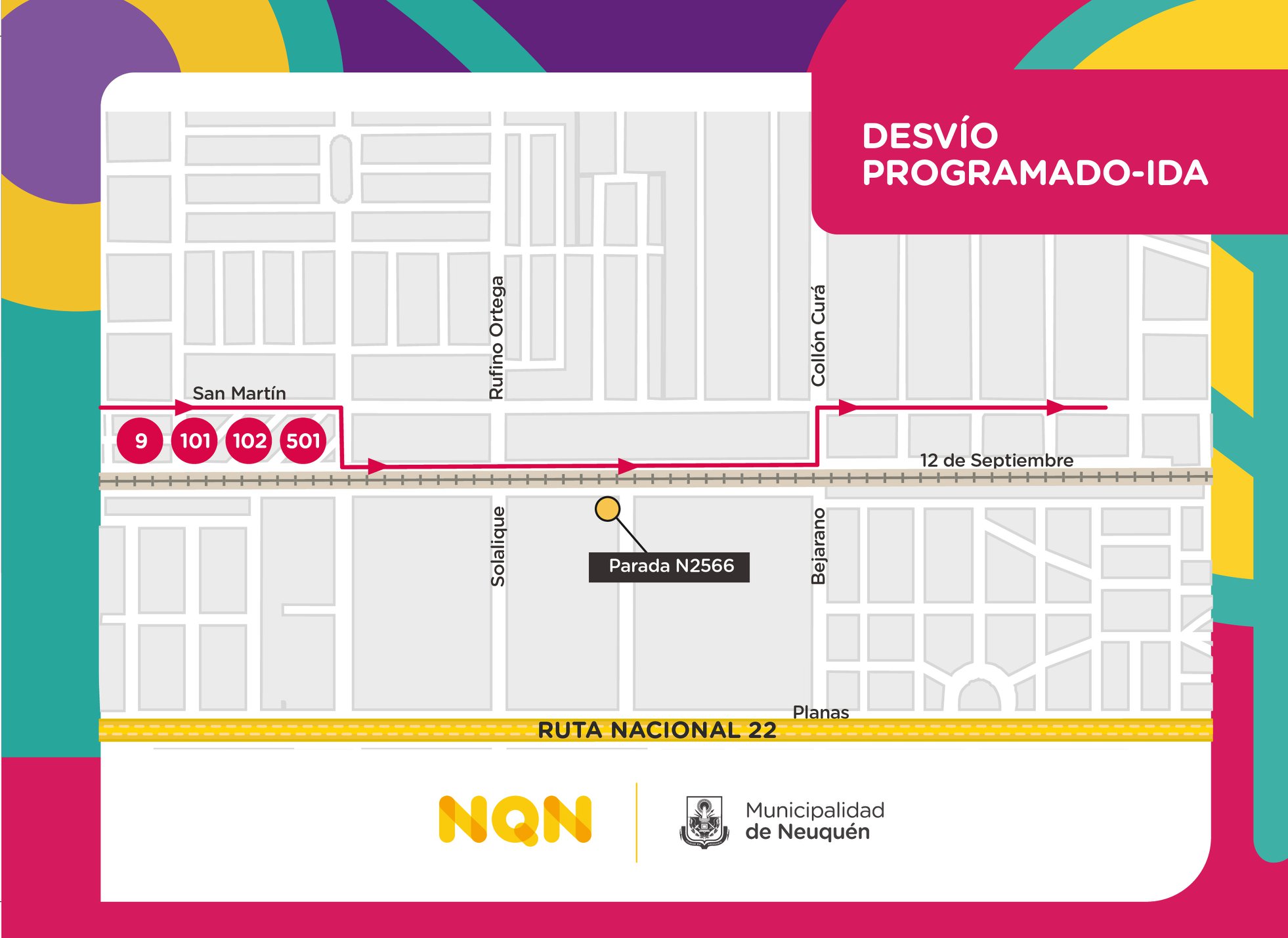 “La modificación será solo para los que circulan de oeste al centro. Ellos van a venir por San Martín y en Rufino Ortega desviarán a 12 de Septiembre, seguirán hasta Bejarano, San Martín y de ahí su recorrido habitual”, explicó y aclaró que allí se establecerá una parada.
