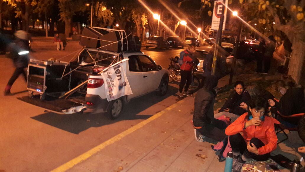 La primera de ellas es la permanencia en la Casa de Gobierno, para obstaculizar la actividad de la sede del Poder Ejecutivo. Desde las 7, los maestros y maestras se apostaron en las veredas del histórico edificio del centro de la ciudad, al que rodearon de banderas y carteles.