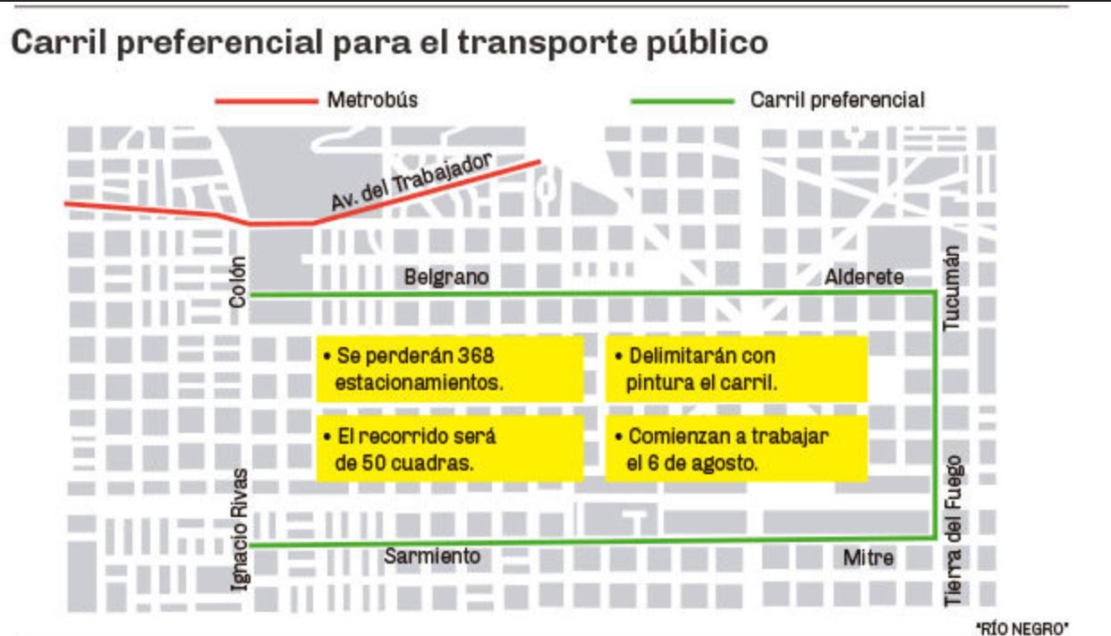 Este lunes se comenzó un operativo puerta a puerta para informar a los frentistas las nuevas reglas que se aplicarán con los carriles preferenciales. El punto de inicio de la recorrida será la avenida Argentina y Belgrano, y desde allí seguirán el dibujo previsto para estos carriles que se extenderán por calle Belgrano desde Colón, luego Alderete, Tucumán, Tierra del Fuego, Mitre y Sarmiento hasta Ignacio Rivas. El recorrido total será de 5.1 kilómetros de extensión.