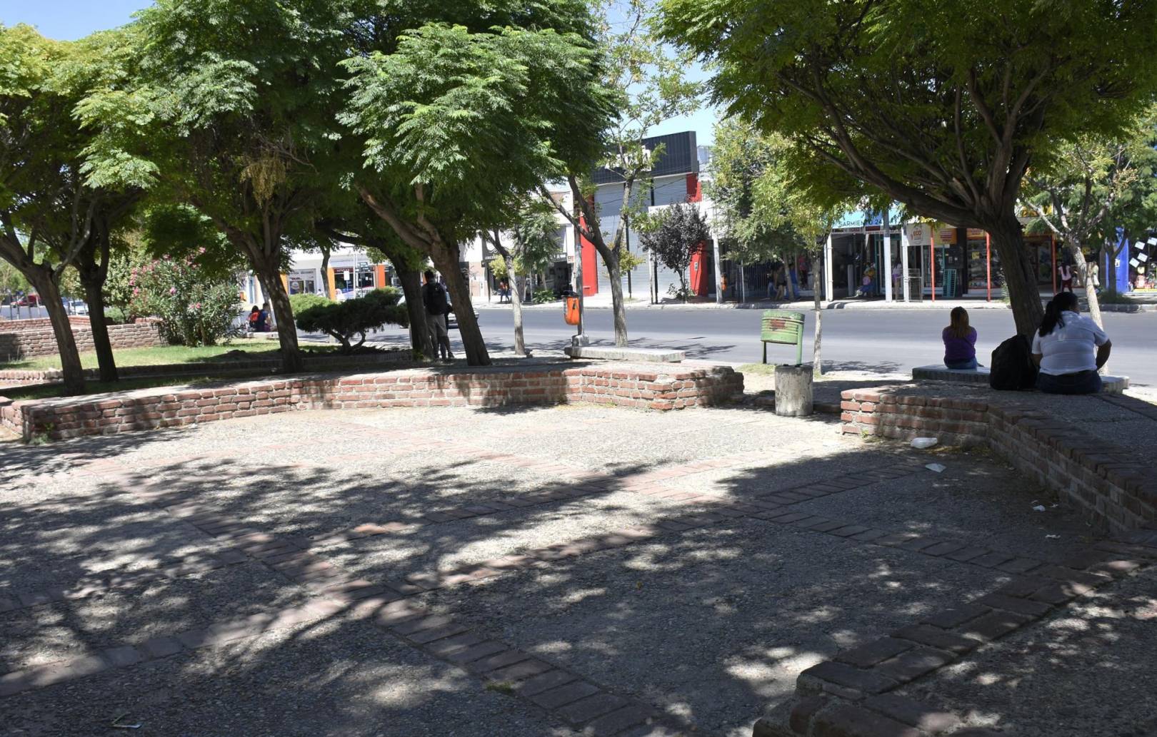 En el sector oeste sobre calle Sarmiento, desaparecerán los canteros de ladrillo a la vista. Aseguran que no quitarán los árboles del lugar.