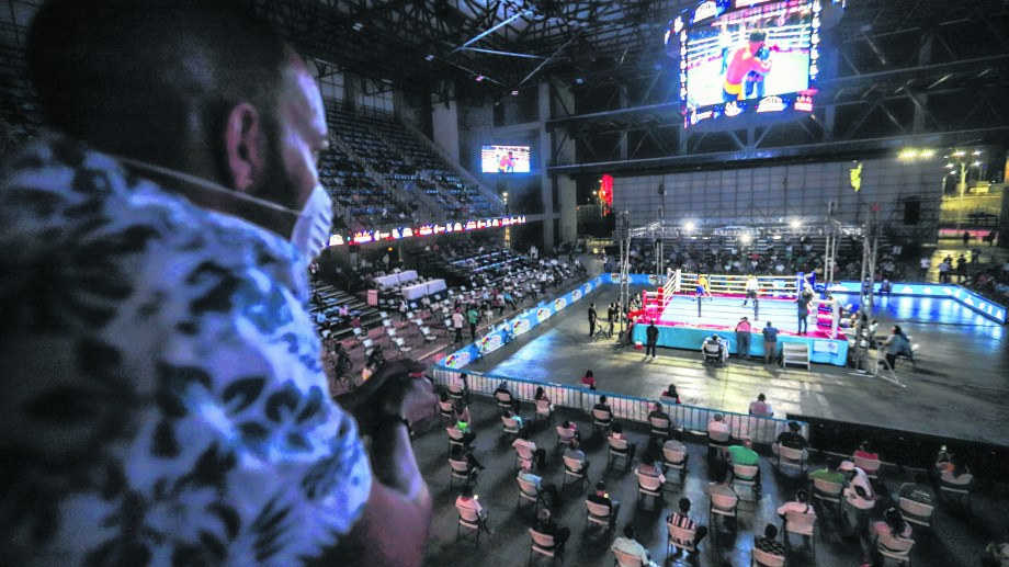 Los boxeadores tampoco quedaron exentos de las medidas de prevención ya que utilizaron tapabocas desde su salida de los vestuarios hasta el cuadrilátero.