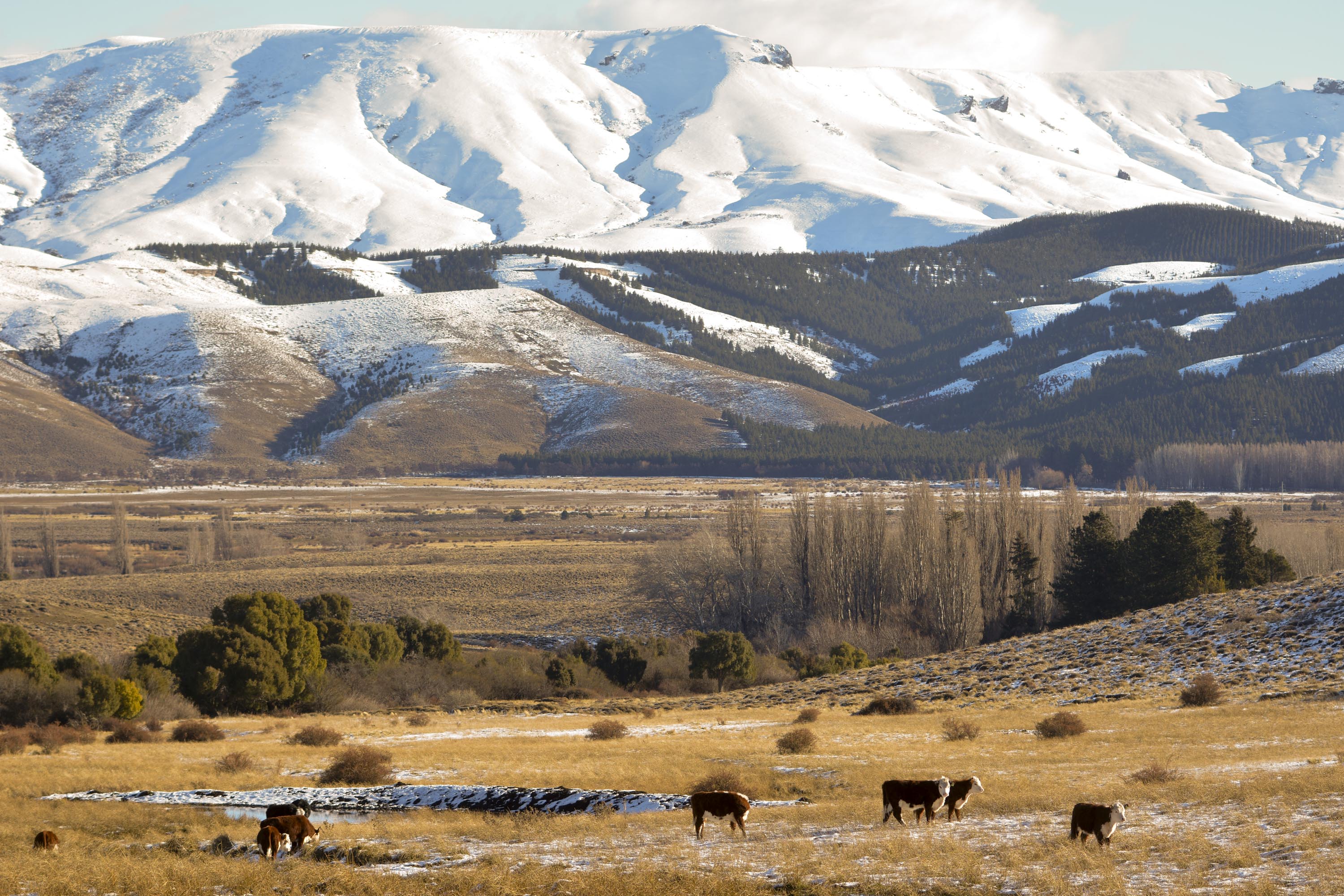 La nieve cae en las partes altas del campo. “Si viene del sur se cargan un poquito estos campos, pero no dura mucho tiempo. No estamos tan pegados a la cordillera”, describe Haneck.
