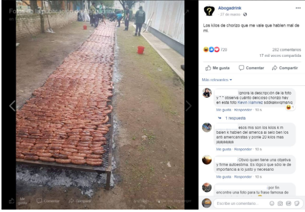 “¡En esa foto está parte de nuestro dinero, robado por los k!”, escribe una usuaria, que agrega un emoticón de enojo al lado de su mensaje. “Es la única manera que la siguen, por el chori VAGOS”, escribe otra. “El choripán es el precio de tu voto y tu dignidad”, comenta una tercera usuaria.