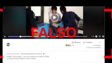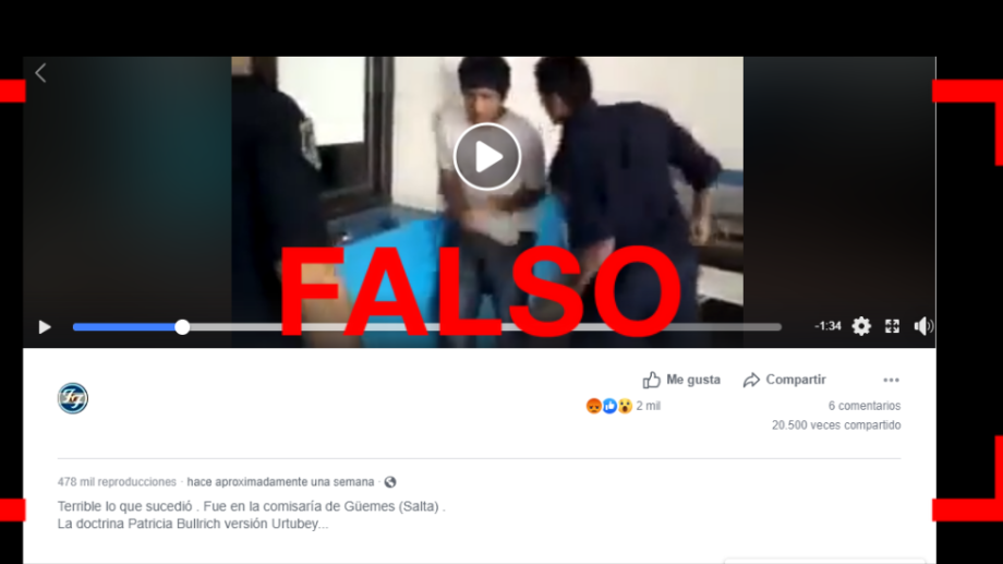 Ante la consulta de este medio, desde el sector de Prensa del Ministerio de Seguridad que lidera Bullrich ratificaron que se trata de una “fake news” y enviaron un comunicado sobre el tema. Allí, se lee: “El episodio que se muestra en el citado video, que se está viralizando por las redes, no se produjo durante esta gestión, sino que es del año 2012. La publicación en el sitio YouTube fue en el año 2013. Las imágenes serían parte de un hecho que habría acontecido en octubre de 2012 en la localidad de Orán, provincia de Salta”.