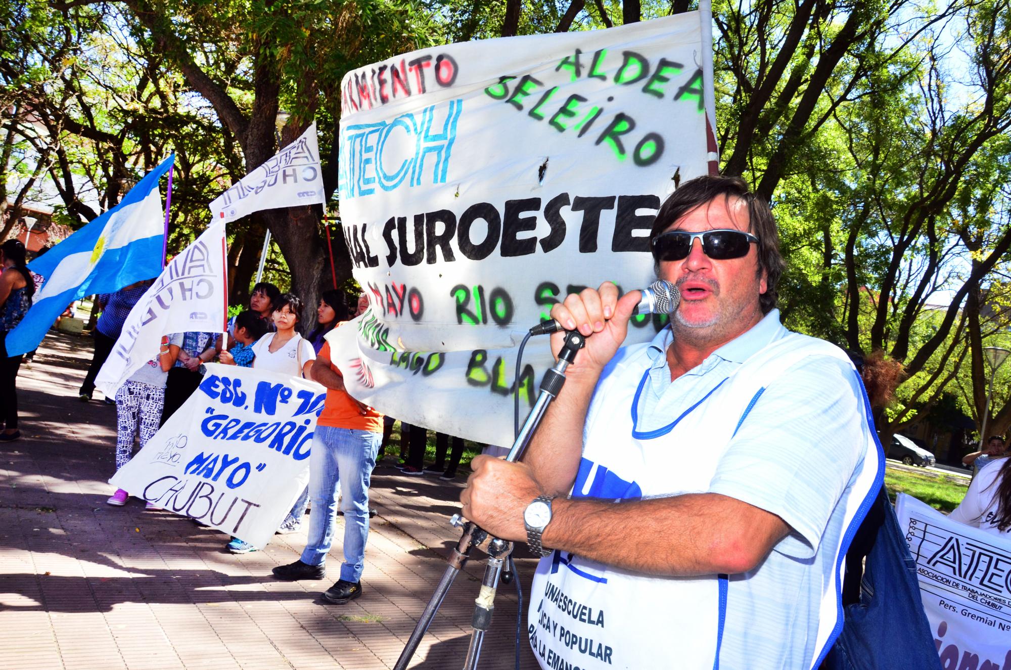 Un grupo de docentes de esta capital, Patagones y Chubut se manifestaron esta tarde en la plaza San Martín de esta capital. Lo hicieron antes de partir hacia Buenos Aires para participar mañana de la marcha federal.