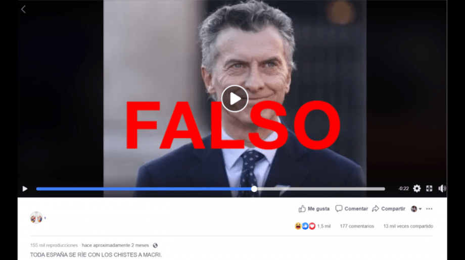 El video “fake” tuvo más de 200 mil reproducciones y fue compartido por más de 15 mil usuarios de Facebook, junto a frases como “¿Qué tiene Macri en la cabeza? A pocos meses de concluir su mandato, la TV extranjera lo ridiculiza” y “TODA ESPAÑA SE RÍE CON LOS CHISTES A MACRI” (sic). Algunas de las cuentas que lo difundieron en Facebook son “VolveremosCFK” y “La Argentina de Macri nunca más”. La desinformación circula también en Twitter y entre los usuarios de WhatsApp, que lo enviaron al número de Reverso (+54 9 11 3182-3655) para que sea verificada.