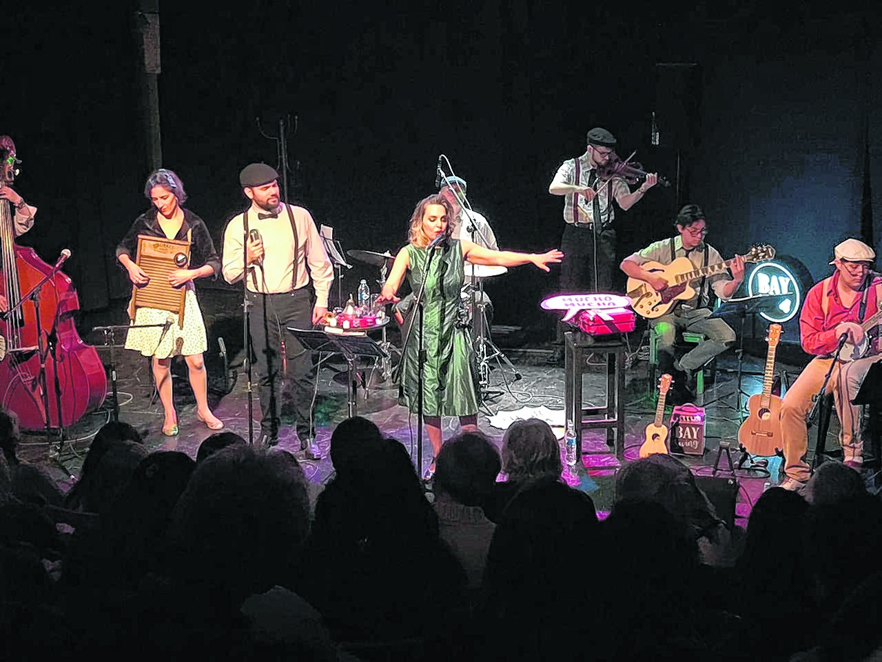 A las 21:30 se presentarán las Bay Swing, un trío femenino que, con una instrumentación de ukeleles, banjolele, bajo o contrabajo, kazoo, percusión y voces, recrean una pequeña Big Band, con un vestuario y caracterización típica de aquellos años dorados, sus integrantes dan vida al swing, al gypsy y a melodías inolvidables con guiños que invitarán al público a trasladarse en el tiempo.