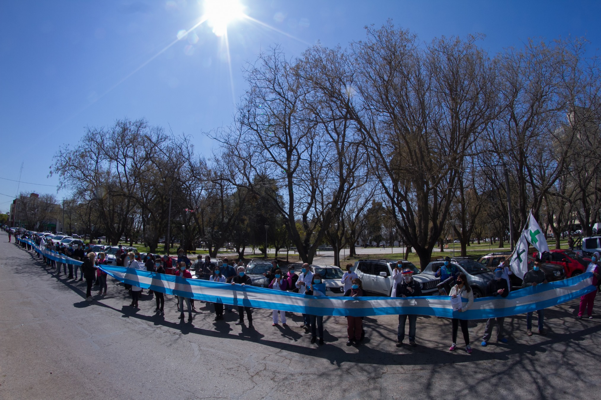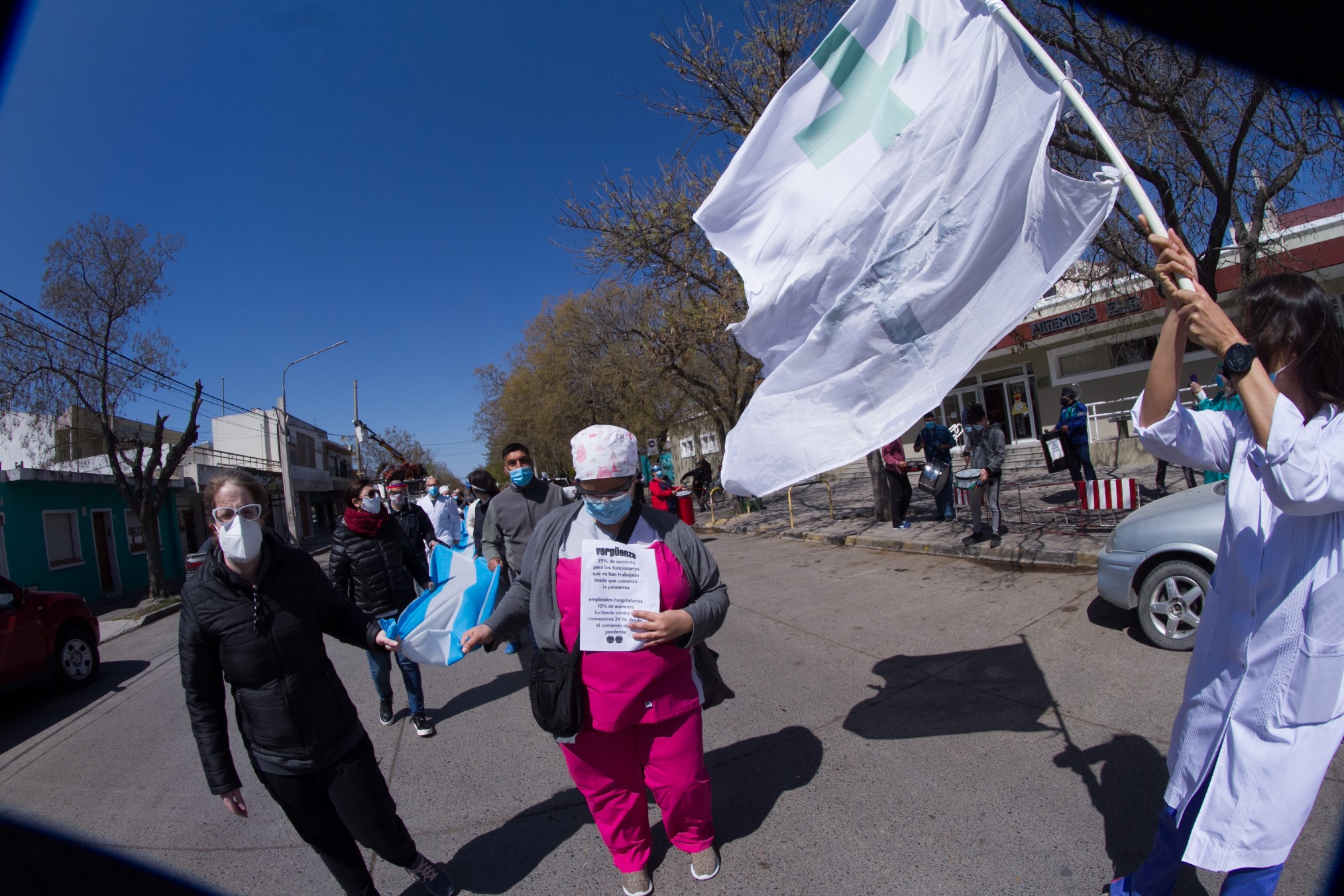 Esta fue la cuarta convocatoria en lo que va de la pandemia del coronavirus, donde los trabajadores se dirigieron desde el hospital Zatti hacia la plaza San Martín frente al Ministerio de Salud y la Casa de Gobierno.