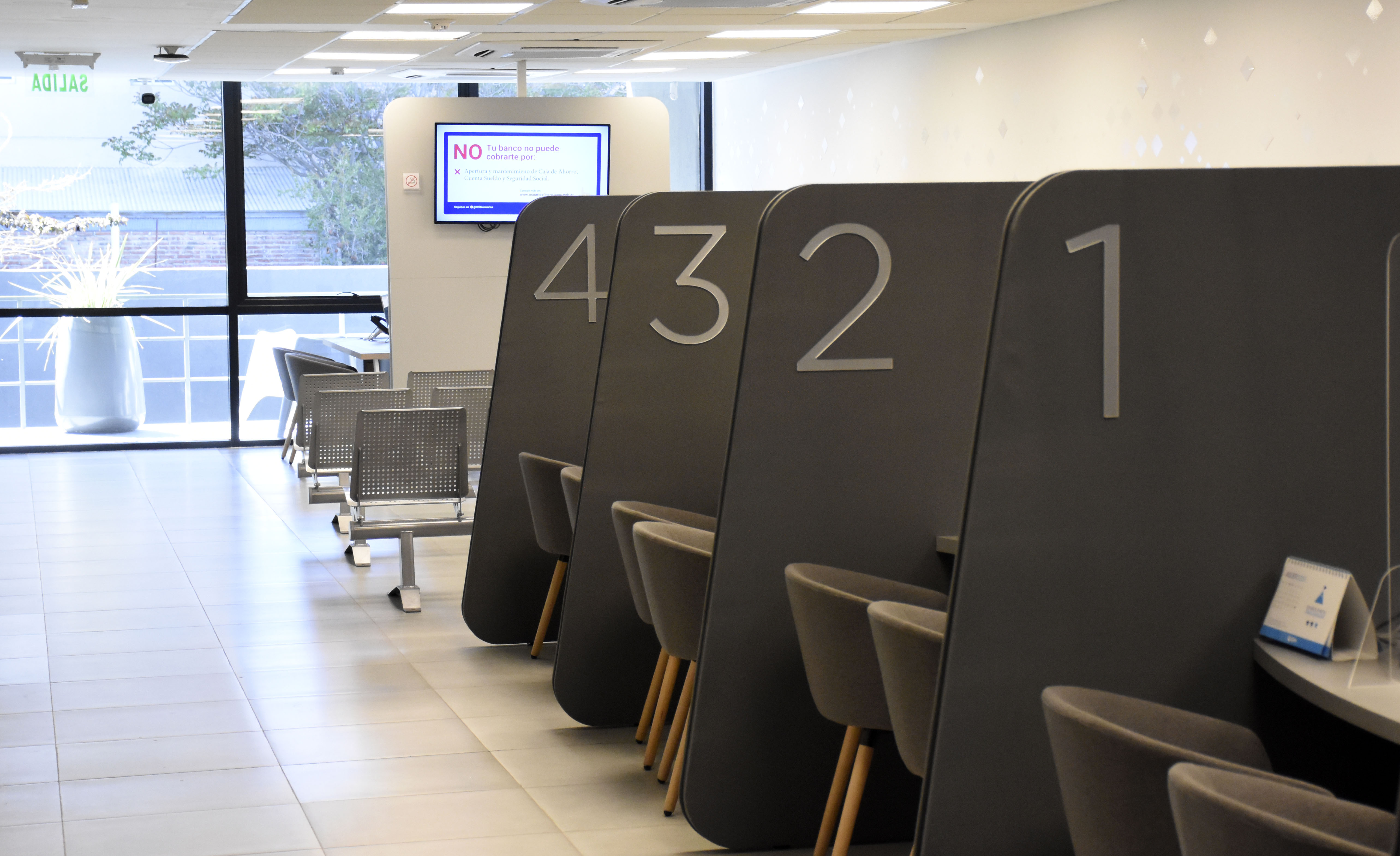 Además, la sucursal cuenta con sala espera para las cajas, servicio de cajas de seguridad y salas de reunión en la que los clientes pueden interactuar con sus pares y con los agentes de atención.