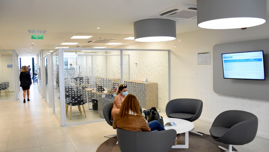 En cuanto a las nuevas instalaciones, se trata de un nuevo edificio de tres pisos, que cuenta con mil metros cuadrados construidos y fue diseñado especialmente para guiar al cliente hacia la autogestión y al uso de los canales electrónicos.