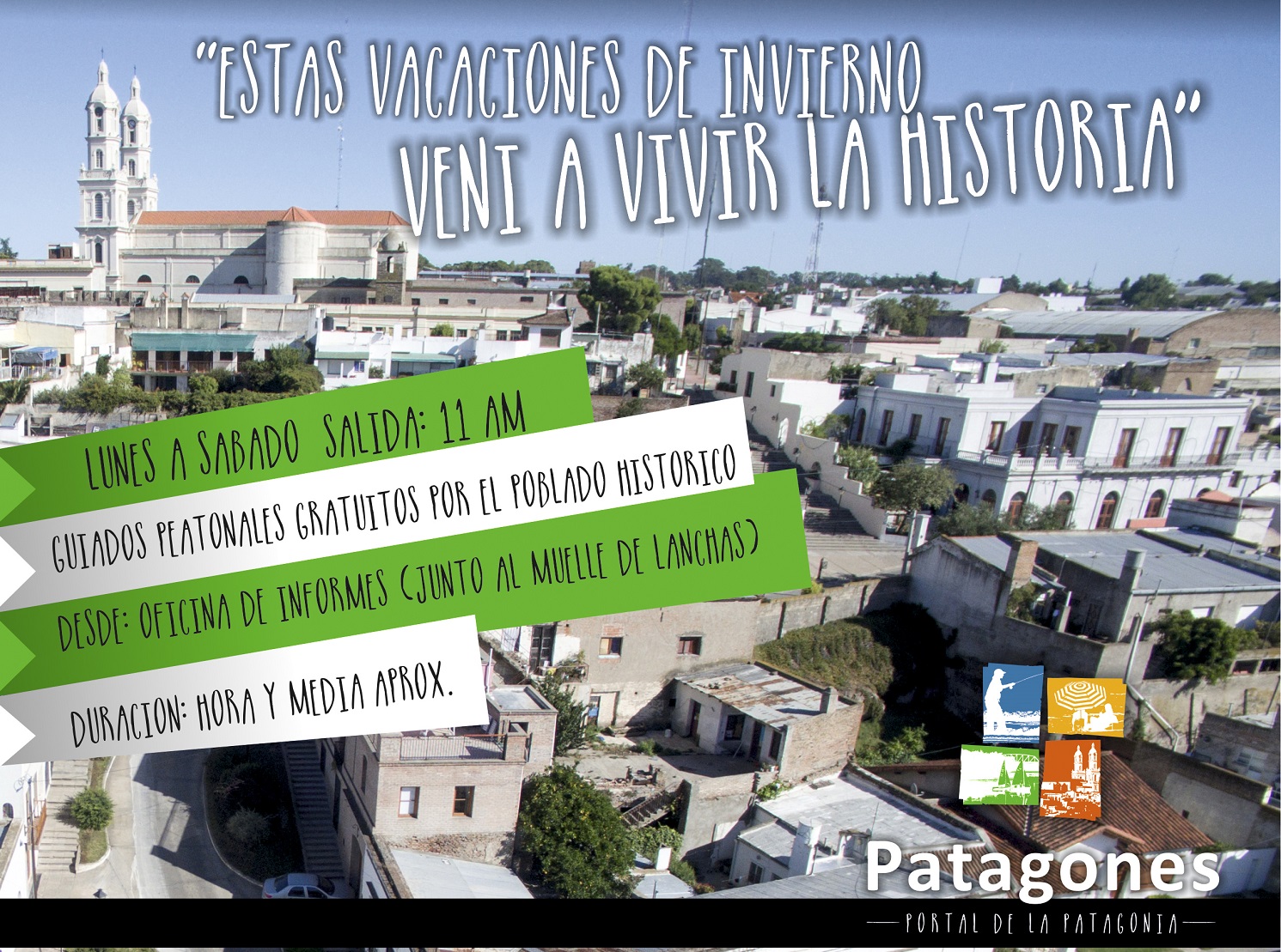 Una de las propuestas para estas vacaciones refiere a las ya tradicionales visitas guiadas por el poblado histórico. Este servicio ofrece la posibilidad de conocer la historia en su lugar, apreciando los distintos bienes, sitios y monumentos que componen el poblado. Los circuitos permiten visitar los ranchos coloniales, realizar el acenso a la torre del antiguo fuerte e ingresar a la Iglesia Parroquial Nuestra Señora del Carmen. Durante esta experiencia se puede apreciar también algunas cuevas hogares pertenecientes a los primeros pobladores, tejidos mapuches elaborados por hilanderas locales y el mausoleo de Luis Piedra Buena. Las salidas guiadas son de carácter gratuito, y están asistidos por guías profesionales de la Dirección y el Museo Histórico Regional Emma Nozzi. Los recorridos parten desde la oficina de Informes turísticos de Avenida Costanera en el Muelle Nacional de Lanchas, de lunes a sábados a las 11hs.