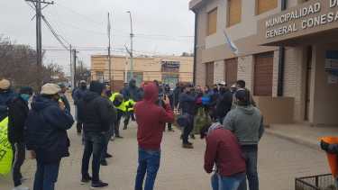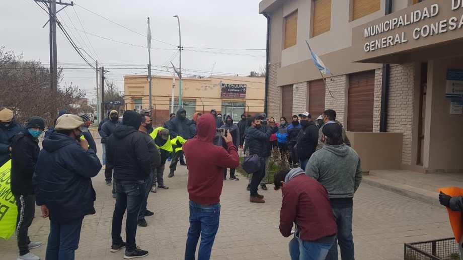 Afiliados y dirigentes de la Unión Obrera de la Construcción de General Conesa reclamaron frente al municipio por la paralización de los trabajos en la Estación Transformadora I y II debido al cordón sanitario que se registra en esa zona.