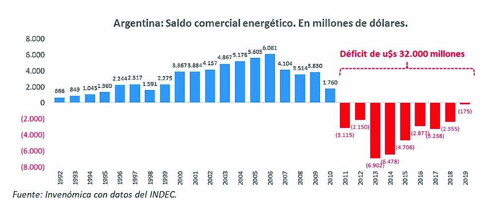 Recuperar YPF para desandar la pesada herencia del macrismo. Si es por echar culpas, el “Gato” está de turno, y nos conviene olvidarnos de la “magia” de Galuccio, que con Chevron en época de Cristina inició el shale intensivo en Loma Campana, que denostaron estos mismos diputados. Y esperemos que no se refiera a haber logrado, con tanto esfuerzo, equilibrar la balanza comercial energética, como se muestra en el gráfico, y a volver a gastar los dólares del Tesoro en importar nuevamente combustibles.