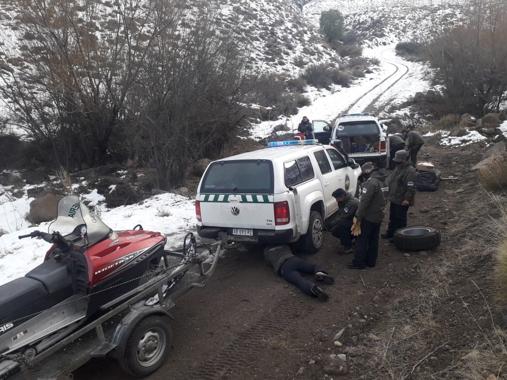 El domingo por la mañana, los gendarmes recibieron un llamado de la familia planteando su preocupación por no poder ayudarla. De inmediato, se puso en marcha una patrulla motorizada con vehículos 4×4 y motonieve para llegar al lugar. «El camino directamente se había borrado, no se veía. Fuimos con el otro hijo de la mujer que conocía bien el lugar», contaron.