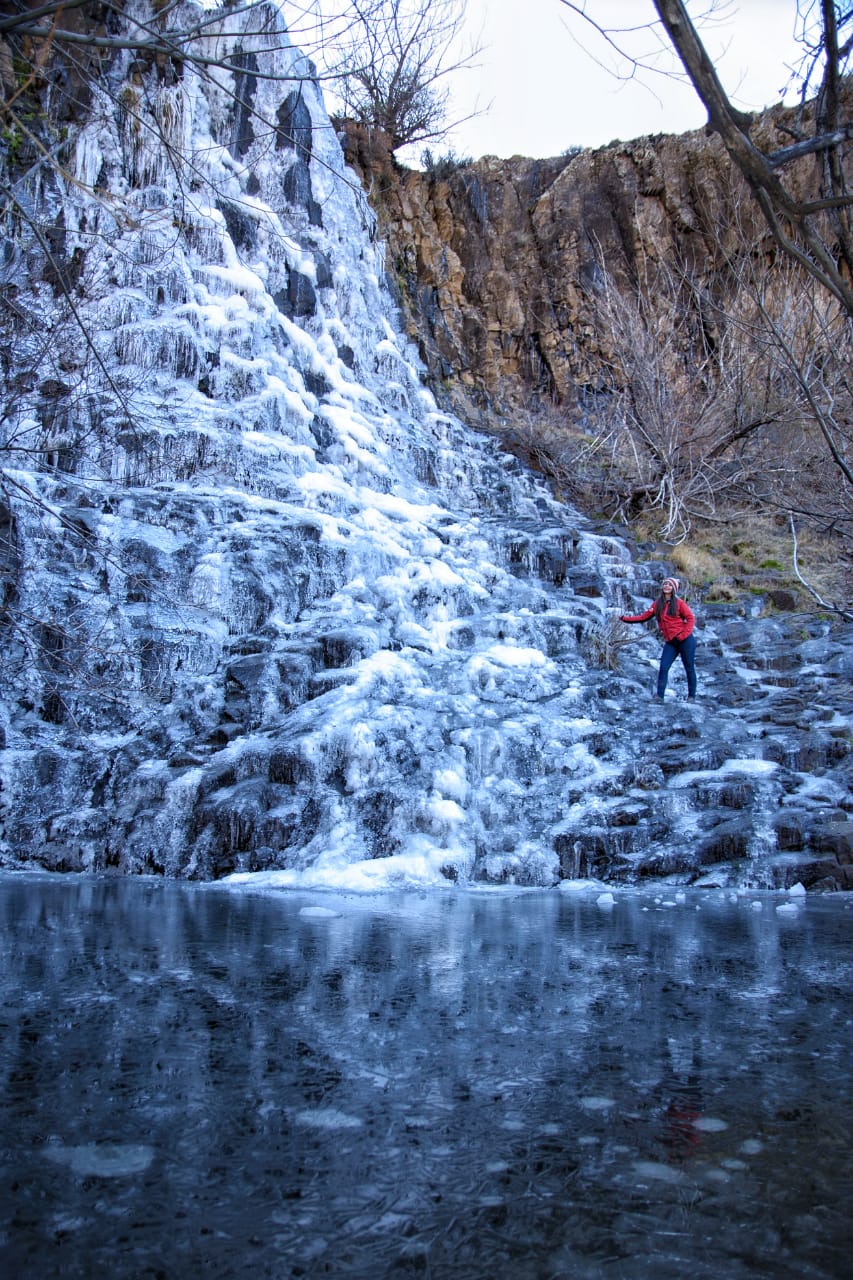 «A unos dos km está la cascada, había visto unas fotos en las redes y sabía que iba a estar así. Se había congelado y también la laguna, que es muy chica, más bien un pozón», agrega.