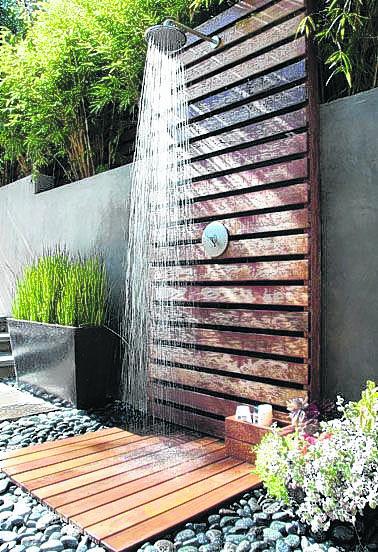 Los arquitectos Victoria Joison de Roca y Mauro Pedrazzoli de Córdoba sostienen que “el elemento ducha puede convertirse en un punto de diseño en el contexto de la piscina”. Aprovechar entonces a combinar elementos naturales como piedra, madera y verde resultará armónico.