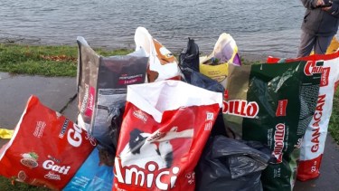 Varias bolsas de basura fueron acopiadas en la margen Sur del río Negro, a la altura del Barco Hundido, como consecuencia de un operativo de emergencia que realizaron los Vecinos Autoconvocados por el Ambiente de Viedma y Patagones.