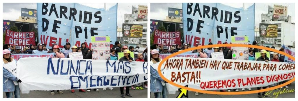 En la manifestación que se realizó en aquel entonces, cuando se tomó la foto que después fue trucada, Barrios de Pie reclamaba la elaboración y posterior sanción de una nueva ley que declarara la emergencia alimentaria.