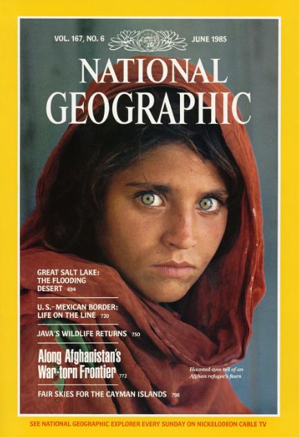 McCurry la fotografió en diciembre de 1984, cuando tenía 12 años, en un campamento de refugiados en la frontera afgano-paquistaní. La instantánea fue portada de la revista en junio de 1985 y se utilizó para crear consciencia mundial sobre el problema de los refugiados.