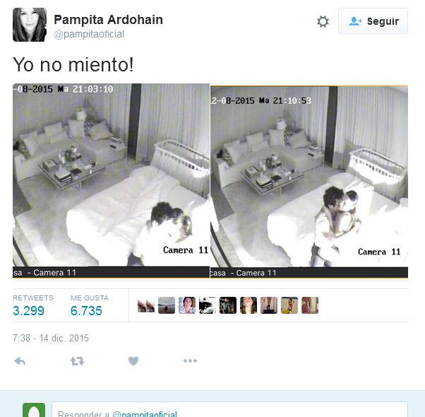“Yo no miento”, escribió Pampita en su cuenta de Twitter demostrando que esa misma noche fue cuando encontró a su ex con la actriz dentro del motorhome.