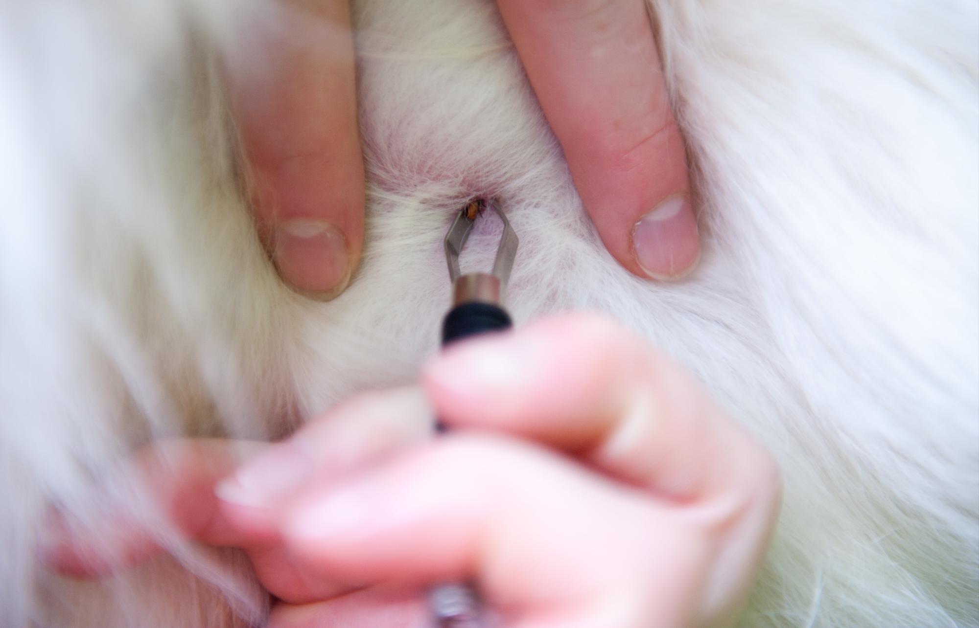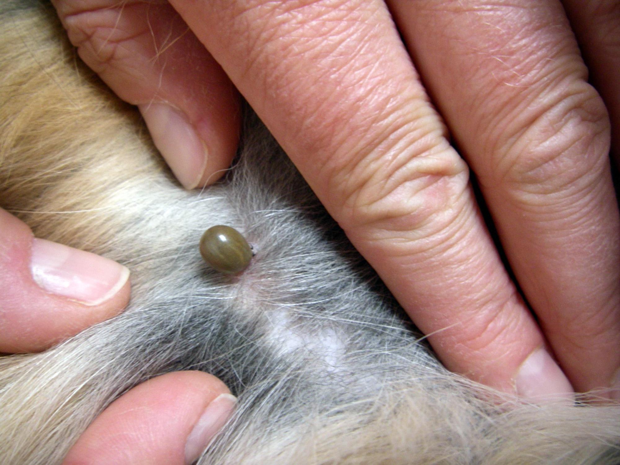 A menudo las garrapatas se pueden detectar a simple vista o se las puede palpar recorriendo con las manos el cuerpo del animal. Por lo general se adhieren a la cabeza, el cuello, las orejas y las patas. Los parásitos a veces se demoran hasta dos horas antes de hallar el lugar adecuado para introducirse en la piel y succionar la sangre del perro o del gato.