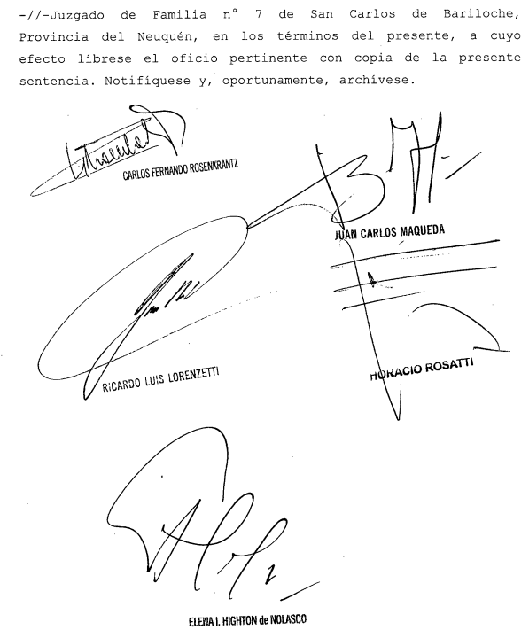 Pero más allá de la cuestión jurídica y del caso en particular, lo que llamó la atención fue la resolución que lleva la firma de los jueces Carlos Rosenkrantz, Juan Carlos Maqueda, Ricardo Lorenzetti, Horacio Rosatti y Elena Highton de Nolasco, que ubica a la ciudad de San Carlos de Bariloche en la provincia de Neuquén.