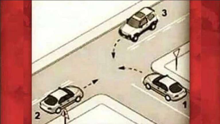 La Agencia Nacional de Seguridad Vial (ANSV) explicó cuál es la respuesta correcta a este acertijo. Así, la entidad señaló que, de acuerdo a lo que indica la ley, el orden de prioridad sería, en primer lugar, para el auto identificado con el número 2, luego el 3 y finalmente el 1.