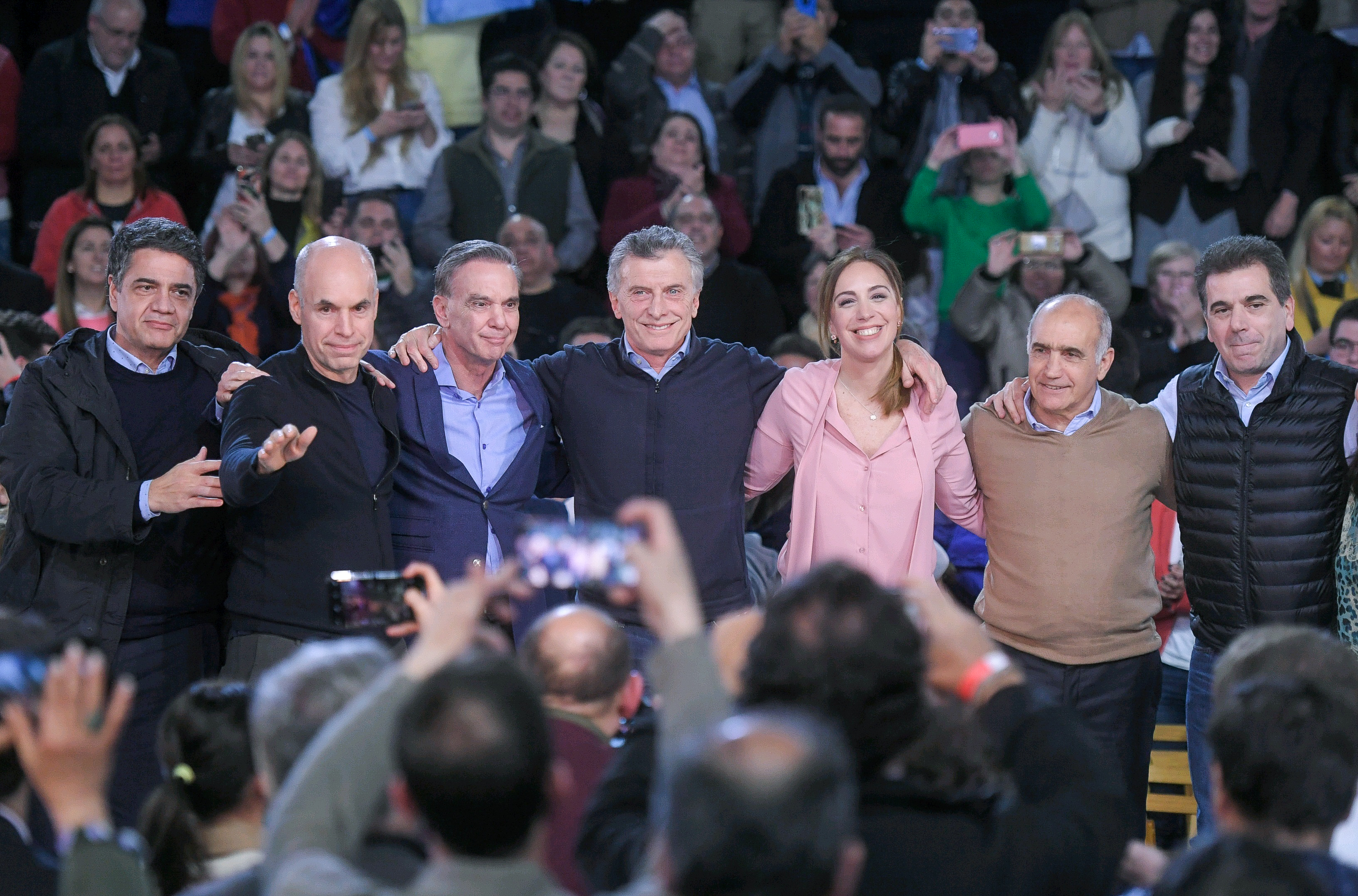 De izquierda a derecha: Jorge Macri, Rodríguez Larreta, Pichetto, Mauricio Macri, Vidal, y Ritondo. (Foto: Julián Álvarez para Télam)