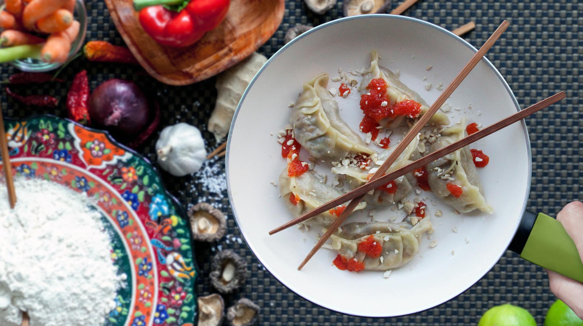 Gyoza: es una receta milenaria japonesa, en forma de pequeñas medialunas. La masa debe ser hiperfinita. Hay que freírla brevemente para luego hervirla. Primero se hacen bolitas con la masa y se estira. El relleno puede ser de verdura, carne picada o gambas.