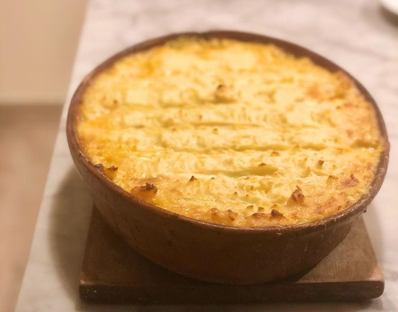 Procesar los vegetales y saltearlos con oliva sal y pimienta. Colocarlos en una fuente para horno. Arriba el pescado cortado en trozos y condimentar con sal, pimienta oliva y ralladura de limón. Rociar todo con la crema. Hacer un puré y agregarle el 1 huevo. Cubrir el pescado con el puré y llevar al horno bien fuerte hasta que se dore la papa.