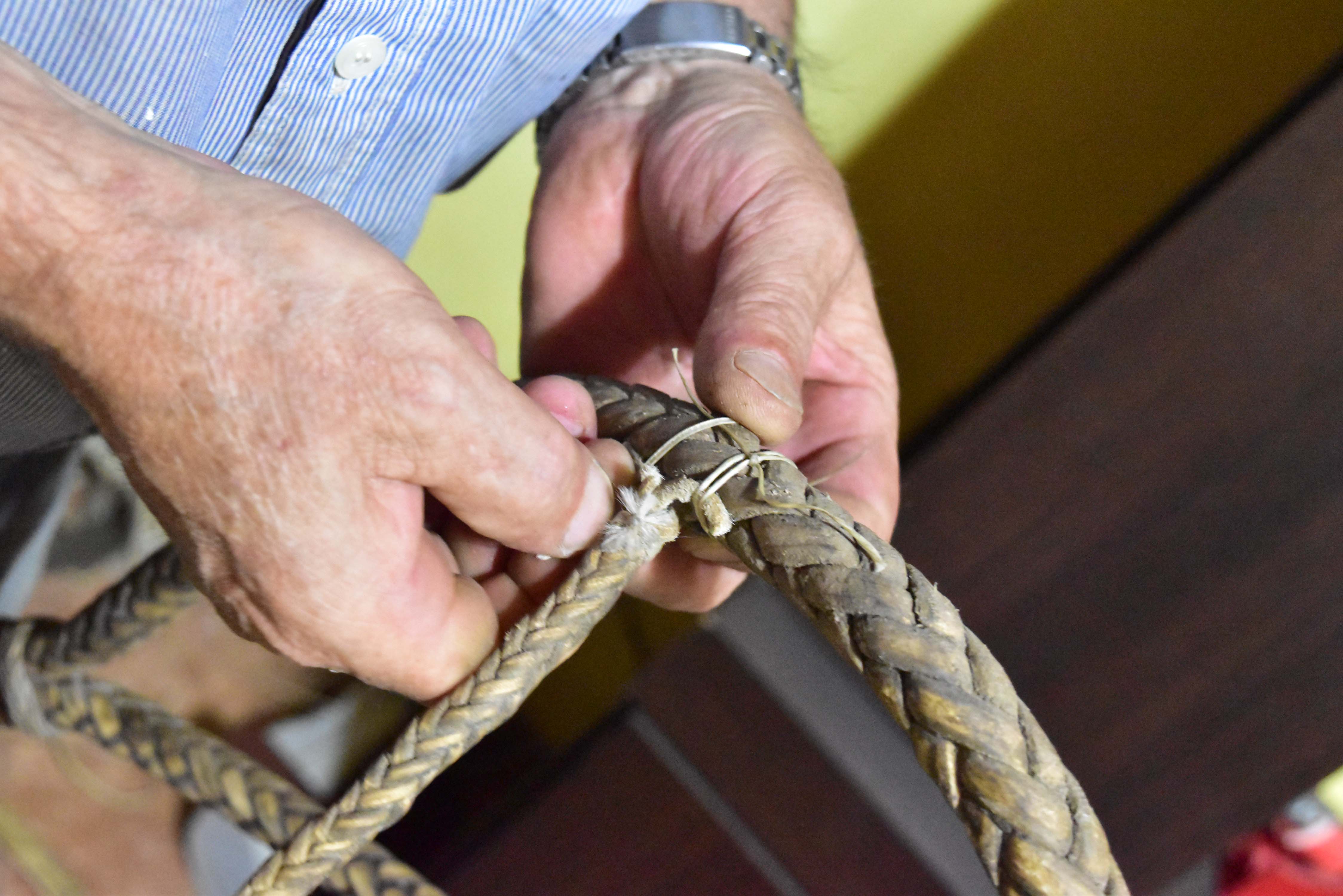 “Cada cuchillo y cada vaina pueden parecer iguales, pero si los miras detenidamente cada uno se distingue de otro y cuando la persona se lo lleva agradeciendo el trabajo me hace sentir orgulloso de esta profesión”, dice. Aunque por su personalidad sencilla se resiste a llamarse artesano. “Soy un humilde soguero”. dice.