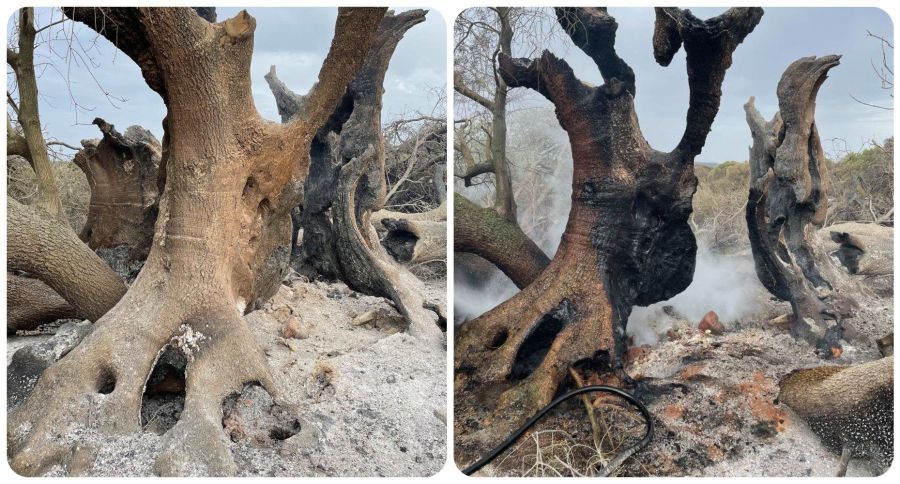 “El Patriarca”, un olivo silvestre con un tronco de unos 10 metros de circunferencia y una altura de 16 metros y medio, fue devorado completamente por los incendios.
