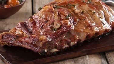 Al horno: precalentar el horno a 150° C. Mezclar en un bol todos los ingredientes, esparcir en una asadera y hornear de 20 a 25 minutos. Servir el pechito acompañando con más salsa y los tomates tibios o calientes. Se puede usar otro corte de cerdo como matambre o bondiola.