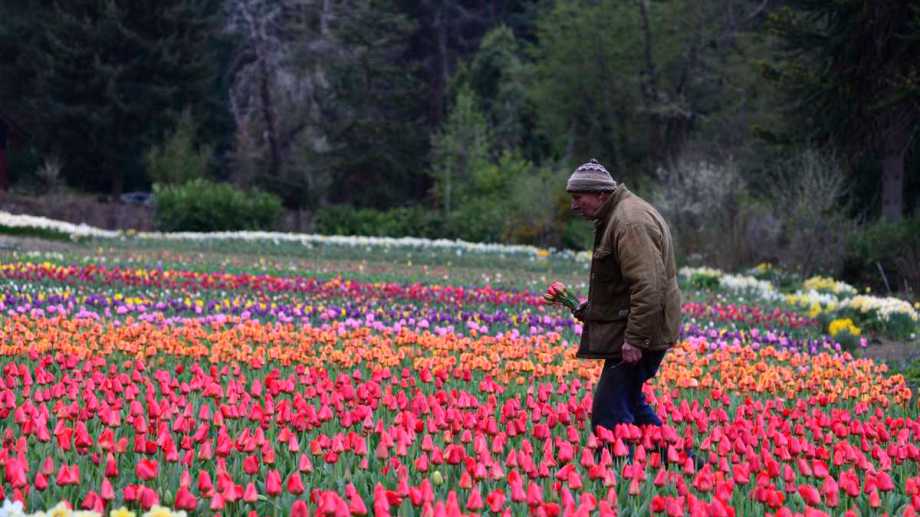 Pedro Smekal da vida a los tulipanes en su chacra de Bariloche