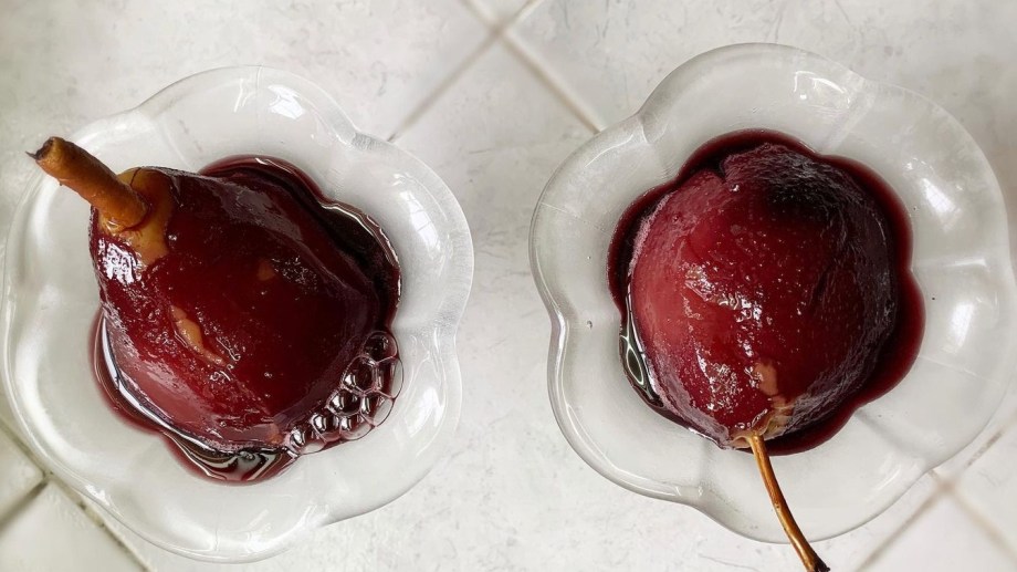 – Pelarlas siempre. Si las hacen enteras les dejan el cabito y las pinchan para que penetre el almíbar. A la mitad, le extraen el centro con cucharita de papa noisette.
