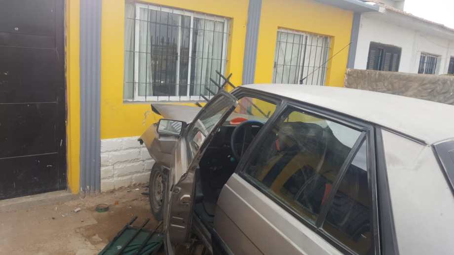 Antes, de detenerse, el auto derribó un paredón y las rejas y atravesó el pequeño patio delantero. La familia afectada estaba en la vivienda, y por fortuna no resultó nadie lesionado.