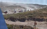 En Senillosa se forma un «cuello de botella» en el semáforo, pero el ritmo se recupera después, aunque la visibilidad se complica por momentos a causa de los fuertes vientos que ya se habían pronosticado para la región.