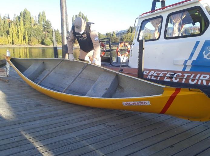 Dos hombres fueron sorprendidos por la Prefectura mientras pescaban a bordo de una canoa canadiense en el lago Nahuel Huapi, a la altura de Villa Tacul. El procedimiento se llevó a cabo esta tarde.